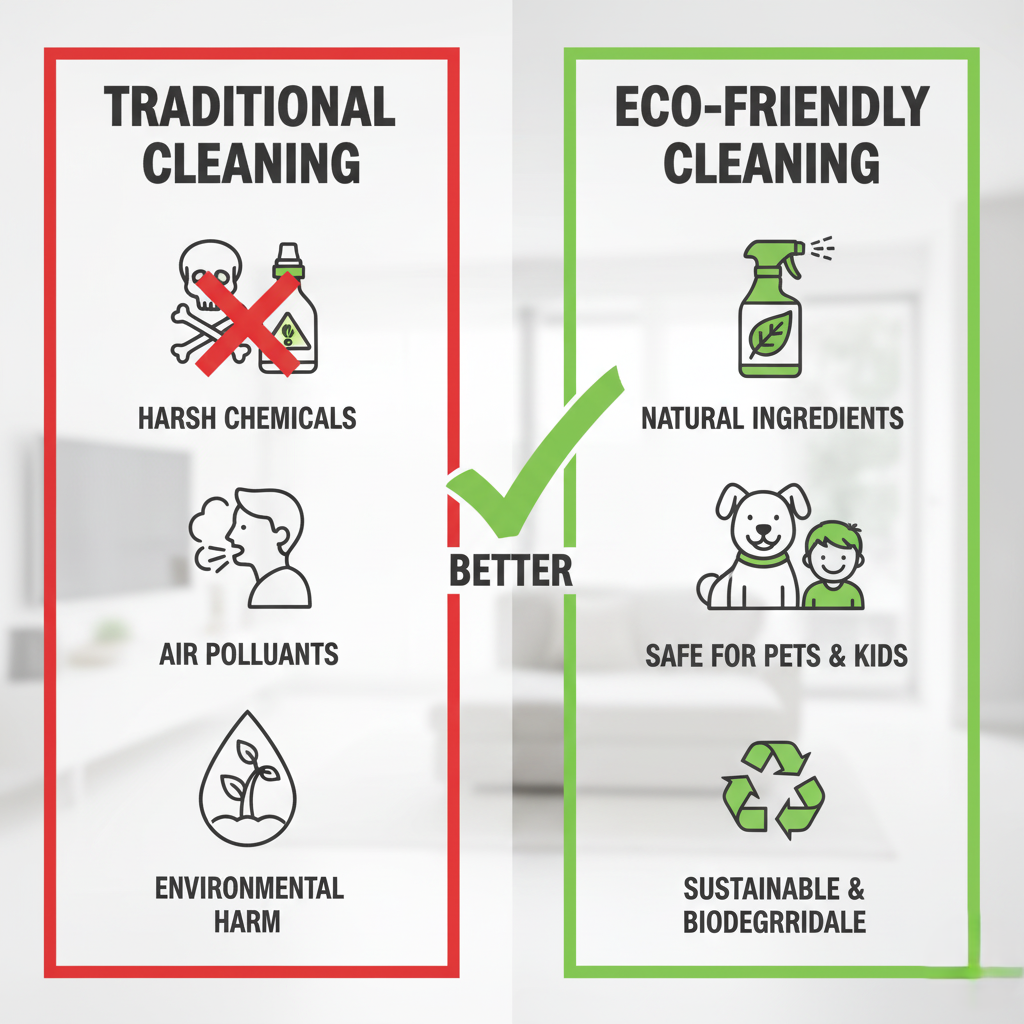 Eco doesn’t mean less effective. In fact, pet-safe and green products are often specially designed to break down organic stains (like food spills, coffee, or pet accidents) at the molecular level. This ensures stains are removed, not just covered up.